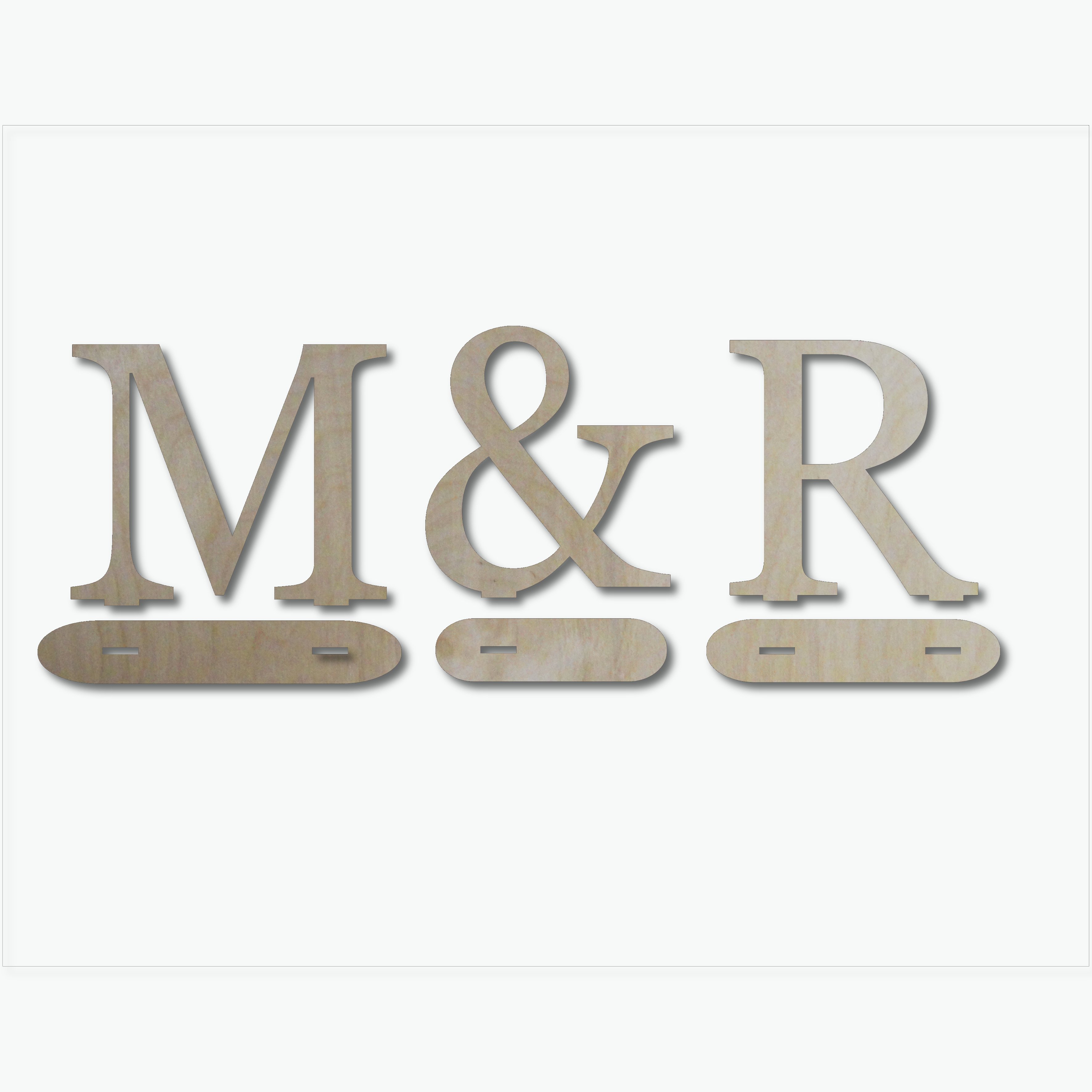 Oferujemy dekoracje wycinane ze sklejki szlifowanej w formie napisów scalonych samodzielnie stojących na podstawkach.  Aby dokonać zakupu  należy podać inicjały.  Można również przesłać swój projekt. Krój czcionki może być dowolny.