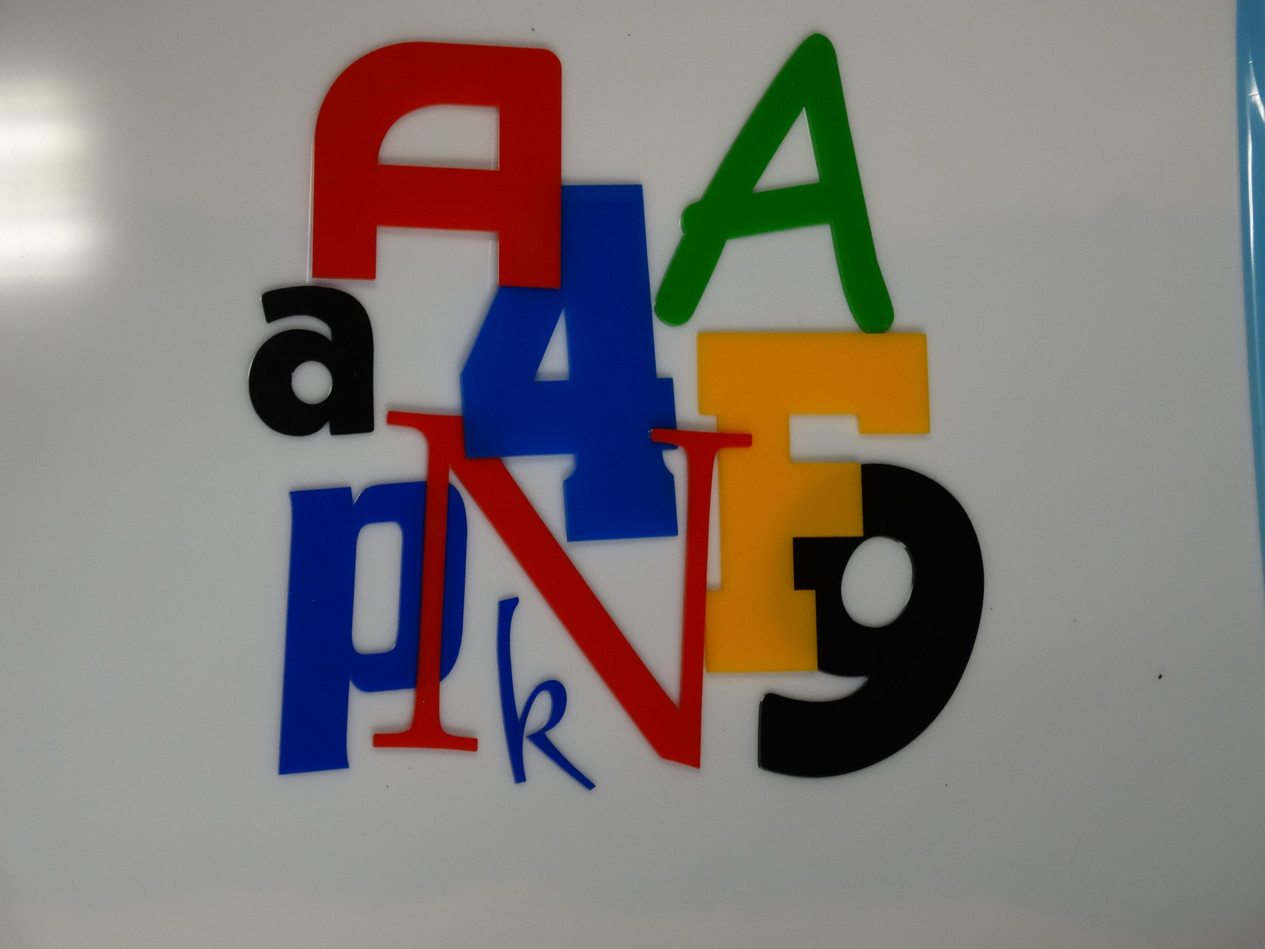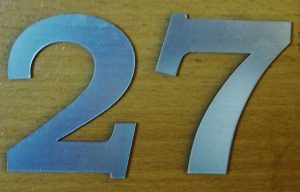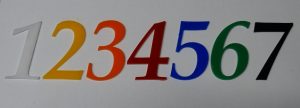 Cyfry i litery z laminatu grawerskiego wykonujemy w kolorach złotym i srebrnym,