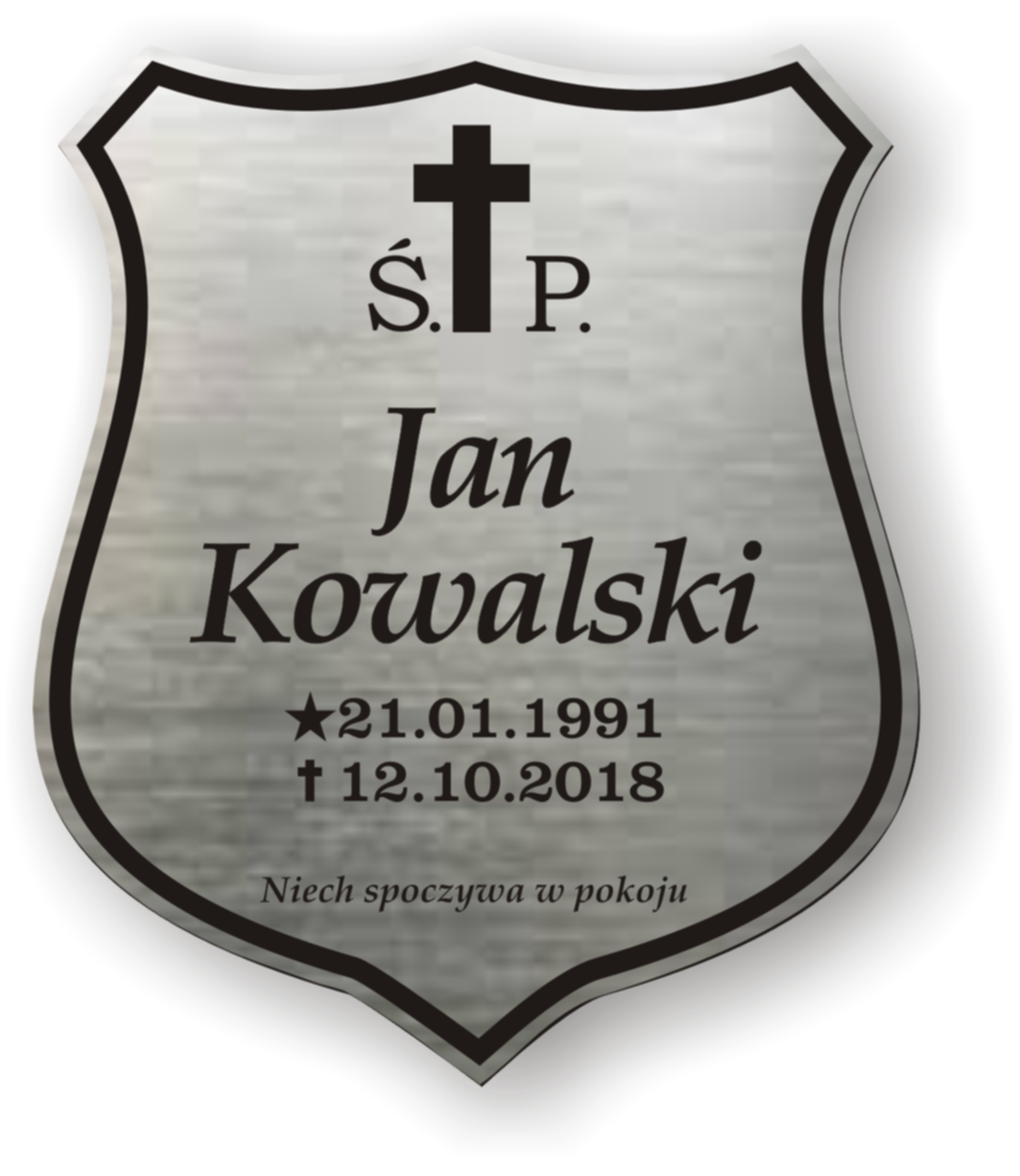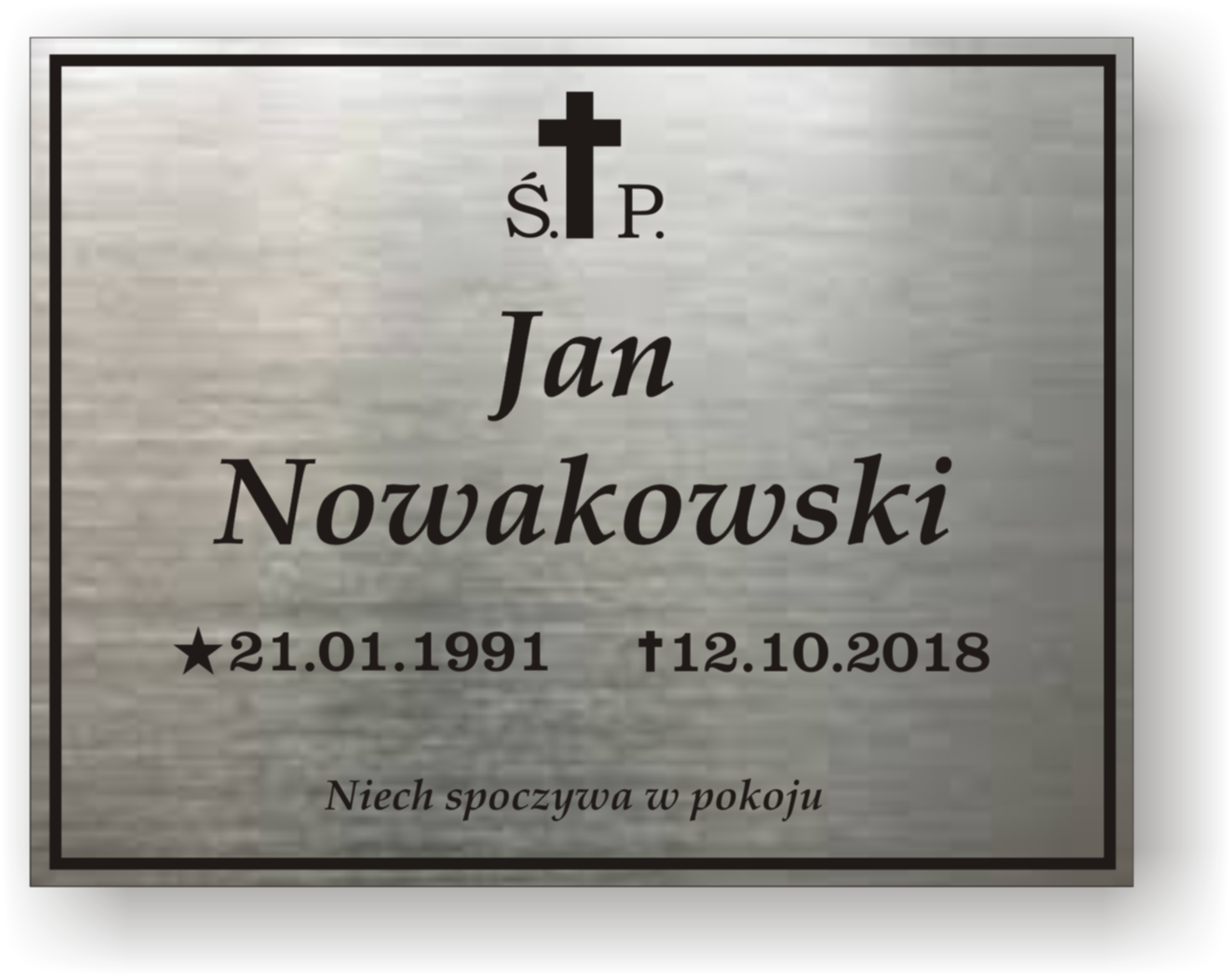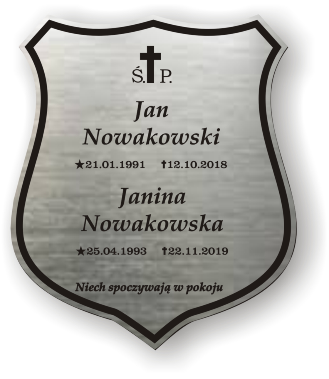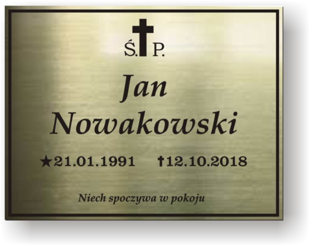 Kolor tabliczki nagrobnej i tekstu zależy od rodzaju użytego laminatu grawerskiego